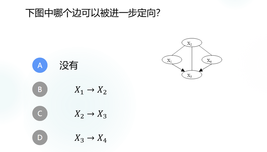 正确答案是C。2->3不是V结构,因为只有1和4之间没有边可能产生V结构。